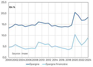 Graphique 12 : Evolution du taux d’épargne des ménages en France.