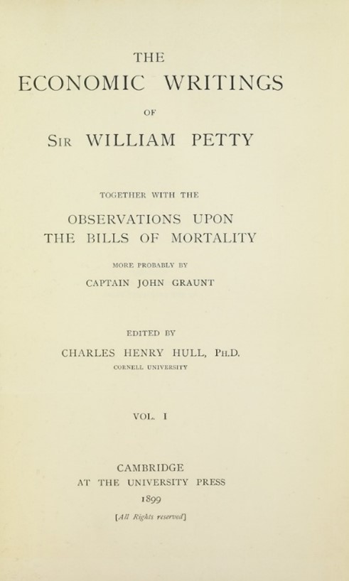 Page titre de « The economic writings », William Petty